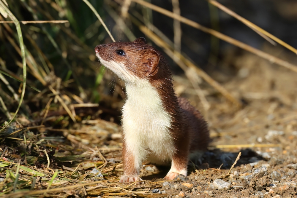 一方、イタチは濃い茶色から赤褐色の毛色で、喉や腹部は白っぽくなっています。毛の密度はテンよりやや粗く、全体的に光沢が少ない印象です。体色が暗めなため、夜間に見かけると黒っぽく見えることもあります。明るい毛色のテンと、やや暗めのイタチとで区別すると判断しやすいでしょう。