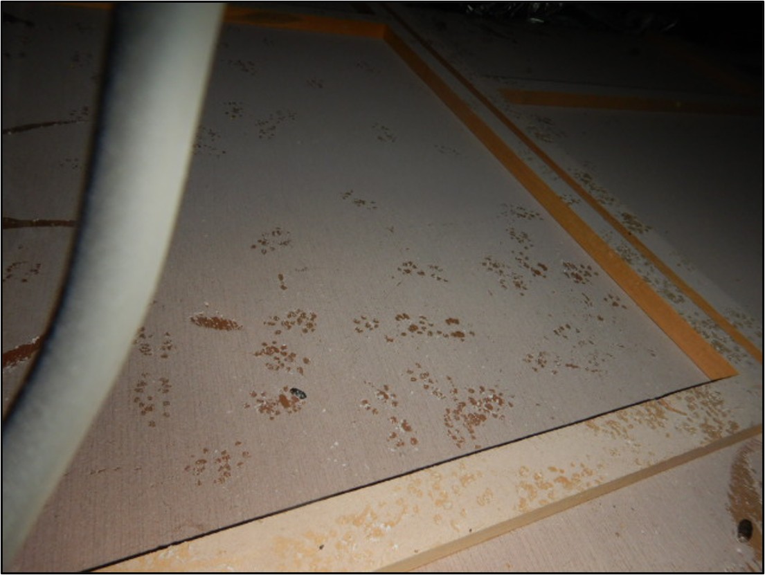 天井裏まで上っている形跡があり、糞害も確認されました。侵入経路や様子を丁寧に確認するため、カメラを設置しました。